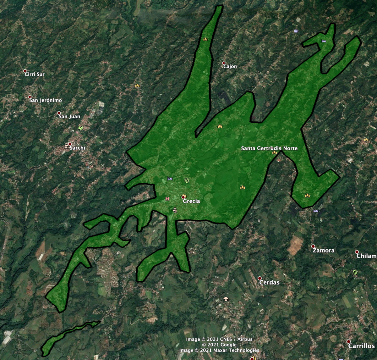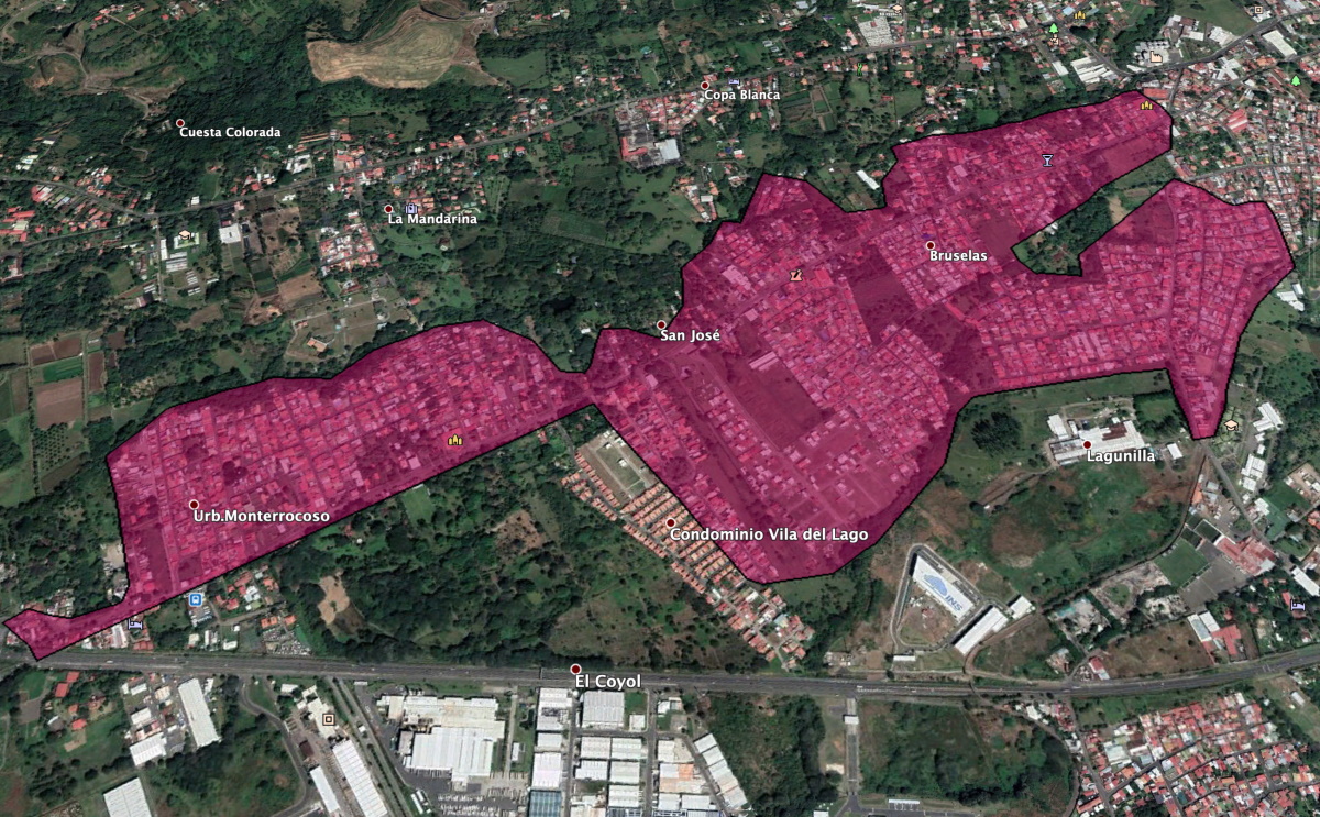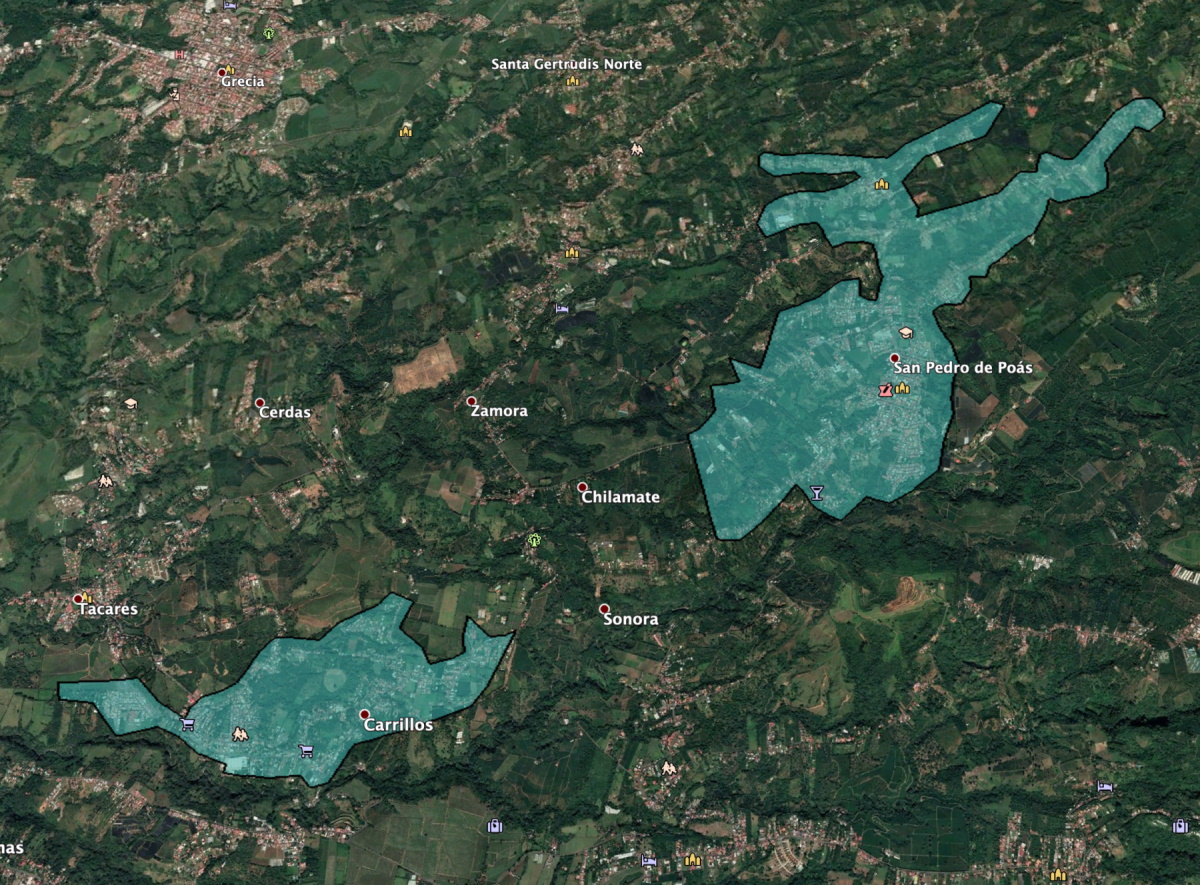 Alto Conejo - Bajo la Pila - Bo Colón - El Estadio - Bo Jimenez - Bosque de la Paz - La Primavera - Grecia Centro - Lotes Murillo - Sector Sur - Sta Teresita - Tarire - Bella Vista - Urb Sofia - Calle Bastos