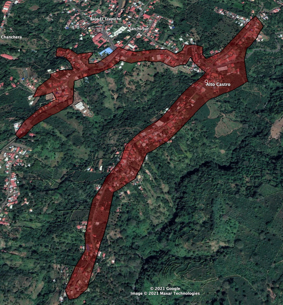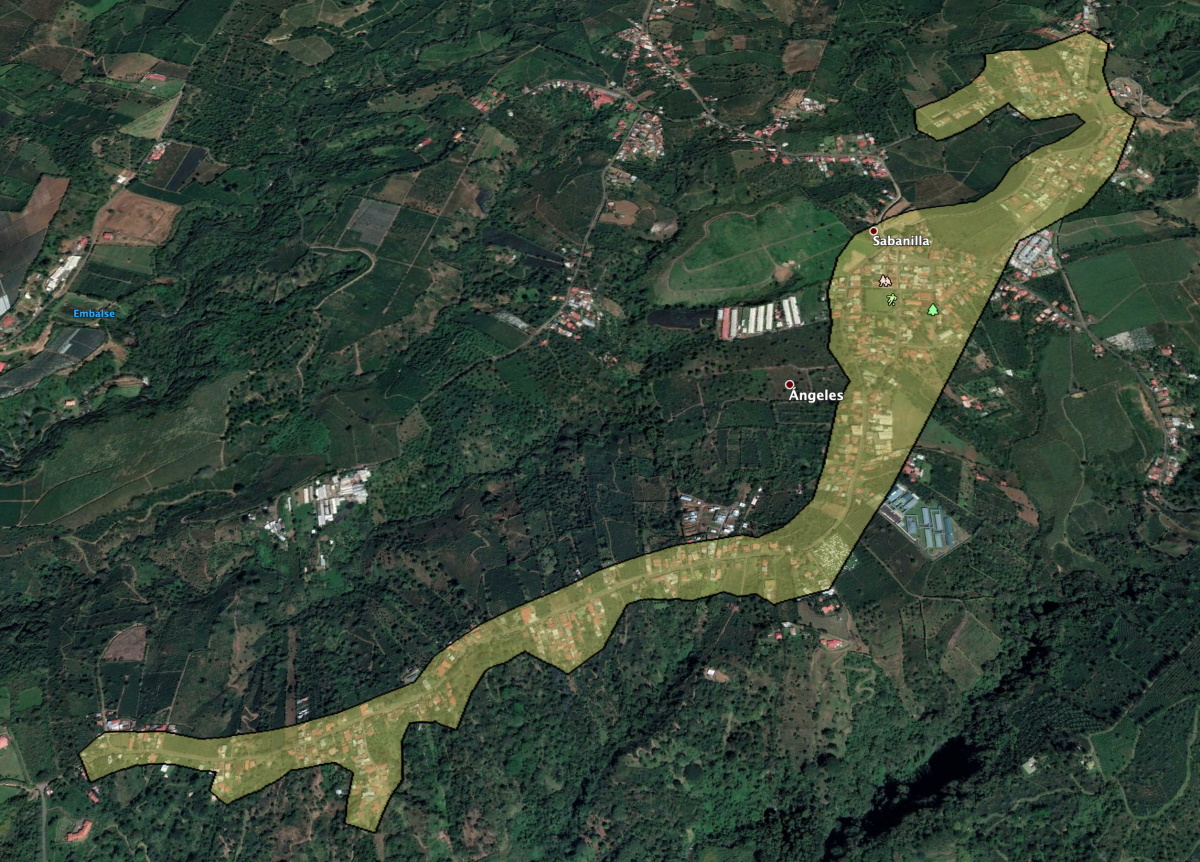 El Jardin - El Invu - Calle Pilas - Barrio El Carmen - Tres Marias - El Muro - Colegio Naranjo - El Muro - El Himalaya - Ebais - CooproNaranjo - Barrio San Martín - Urbanización Marín